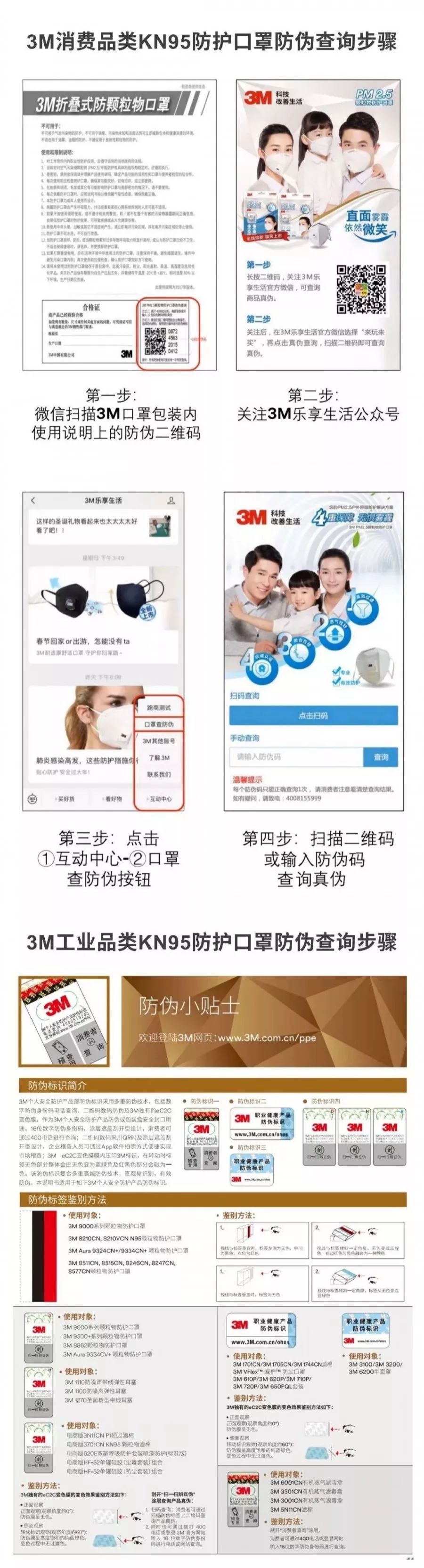 如果是買到盒裝3M N95/KN95系列口罩的話,可以通過上圖步驟,在3M樂享生活公眾號查詢防偽碼驗證真偽。