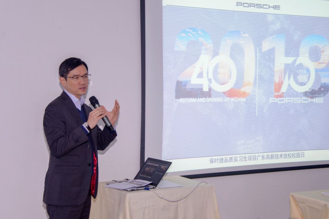 接下來,保時捷(中國)汽車銷售有限公司人才學院院長湛偉業,與同學們分享了保時捷品牌創辦的理念,以及PEAP項目建立的初衷:源于保時捷汽車經銷商對品牌下的維修、服務員工有所要求,但卻很難找到合適的人選,基于為經銷商解決用人難題,PEAP項目在2010年順勢成立,保時捷(中國)與各地優秀職業院校合作,共同培養符合保時捷品質的實習生,再推薦至各個經銷商處服務。