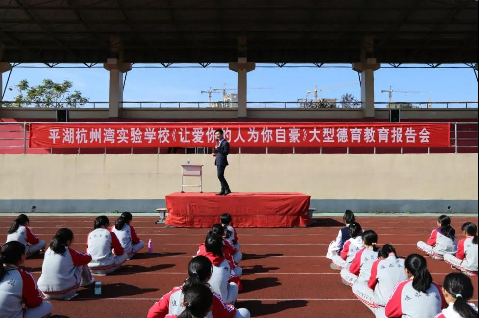 家長會第二站在學校大操場——感恩勵志演講。我校特邀善朝教育集團全國巡講團的周廷諭老師,為初一學生及其家長舉行了一場“讓愛你的人為你自豪”的大型家校共育報告會。